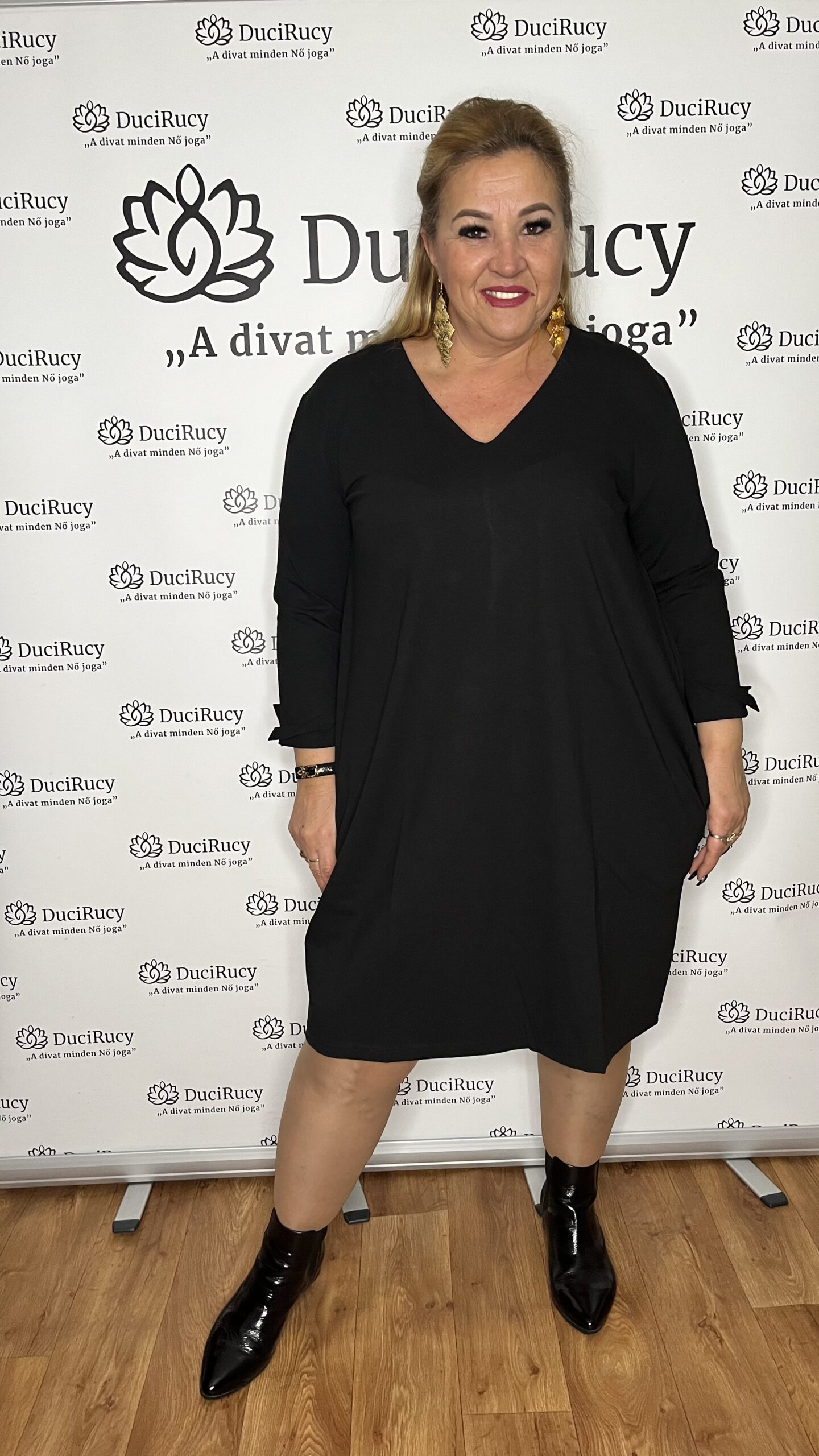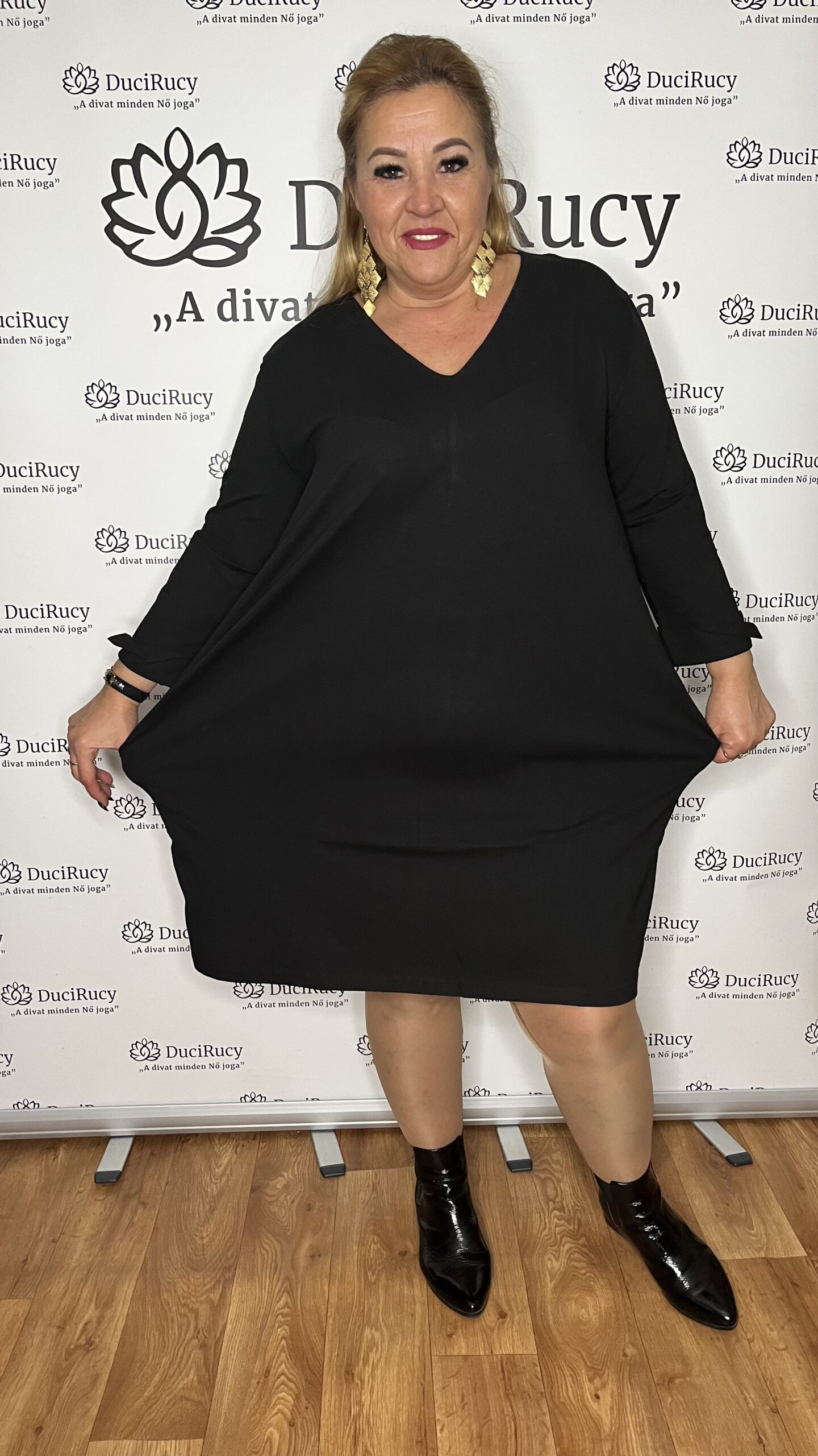 Török extra minőségi pamut anyagból készült extra méretű hagyma ruha V nyakkal fekete színben