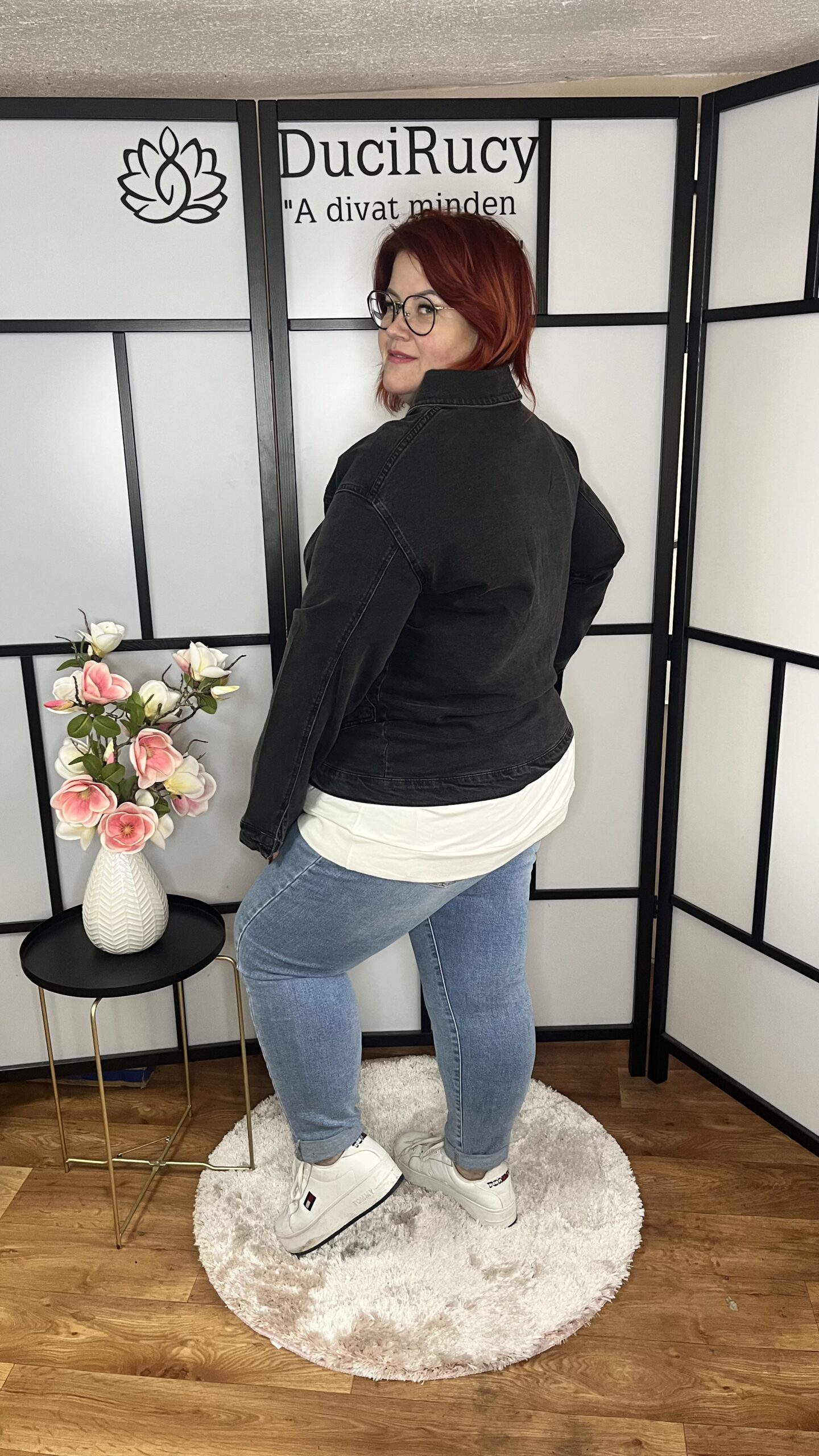 Rövidebb állású, török, kövekkel díszített, gombos farmer kabát. Igazán trendi megjelenést biztosít.