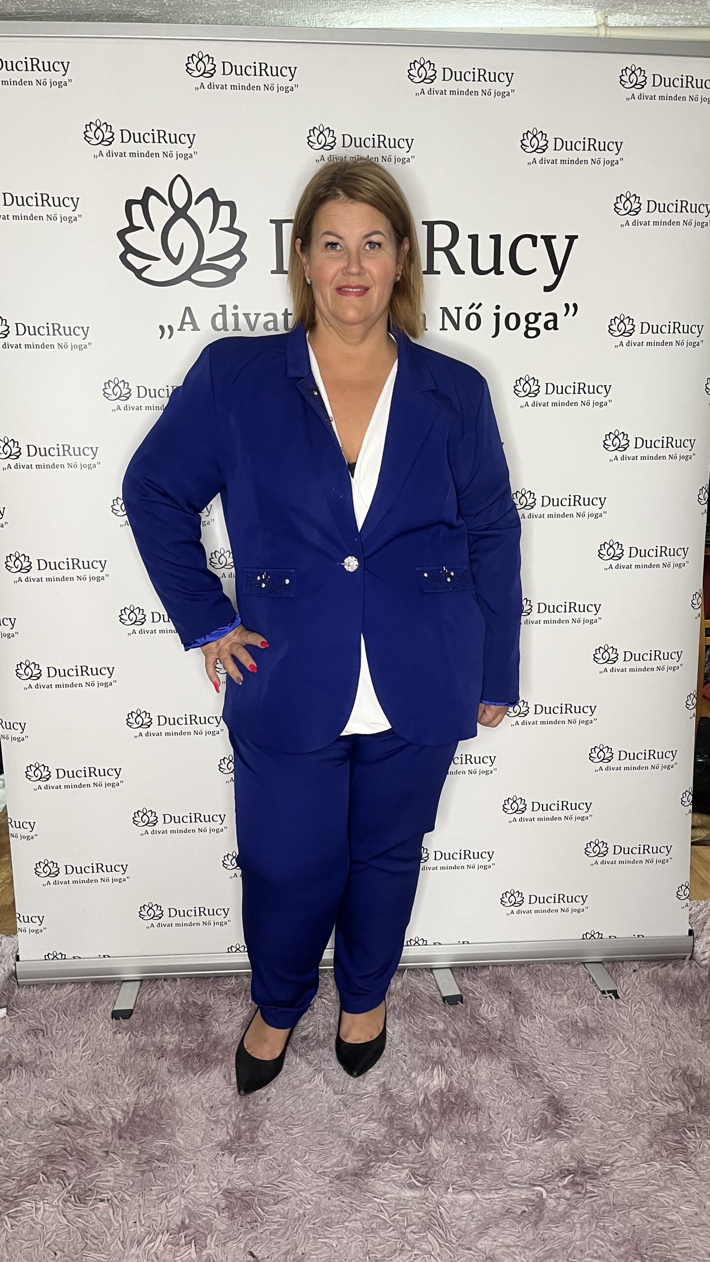 Török kövekkel díszített nadrág kosztüm királykék színben