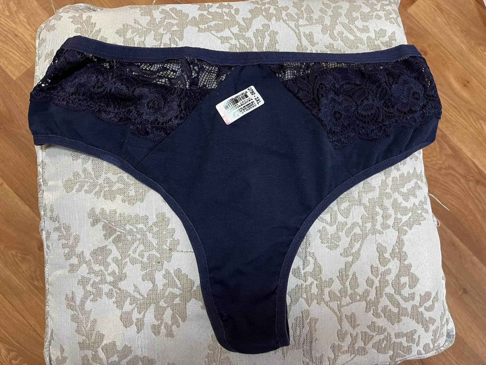 Török minőségi pamut és csipke magasderekú tanga sötétkék színben