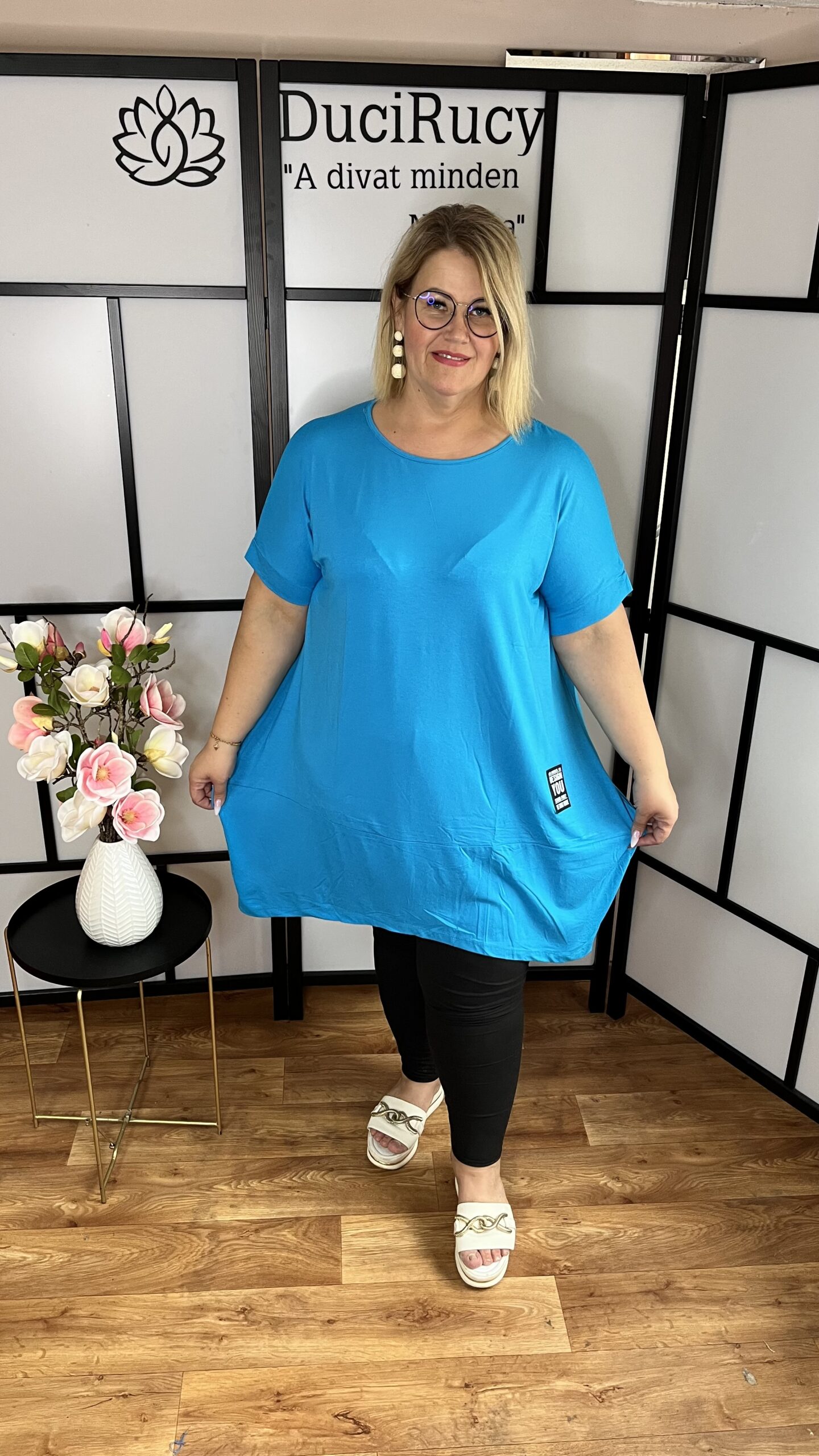 Csodás pamut anyagból készült hagyma fazonú, kerek nyakú tunika. Nagyon mutatós darab, két oldala picit hosszabb,nagyon jól megosztja az alakot. Molett Hölgyeknek ajánljuk.