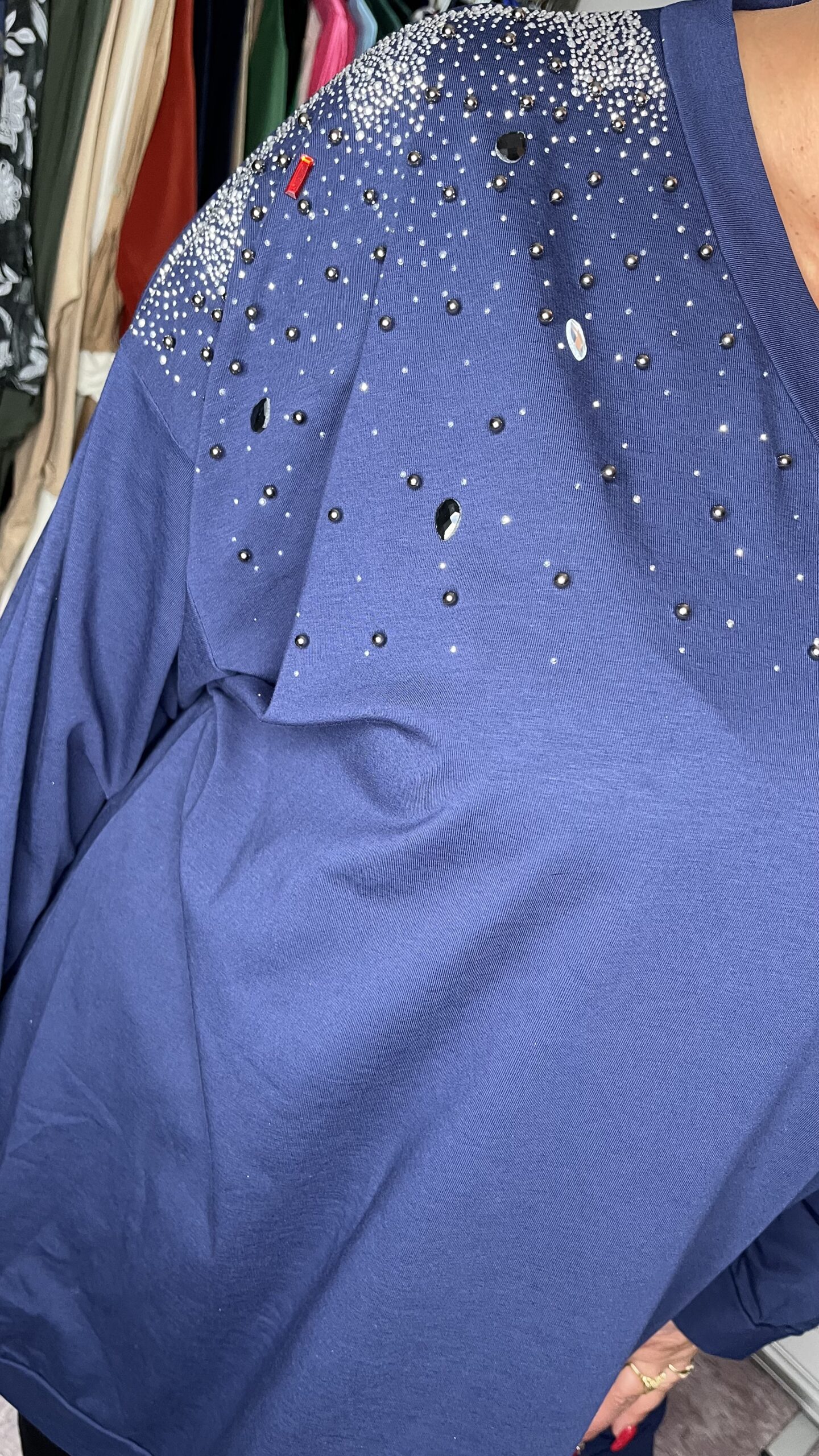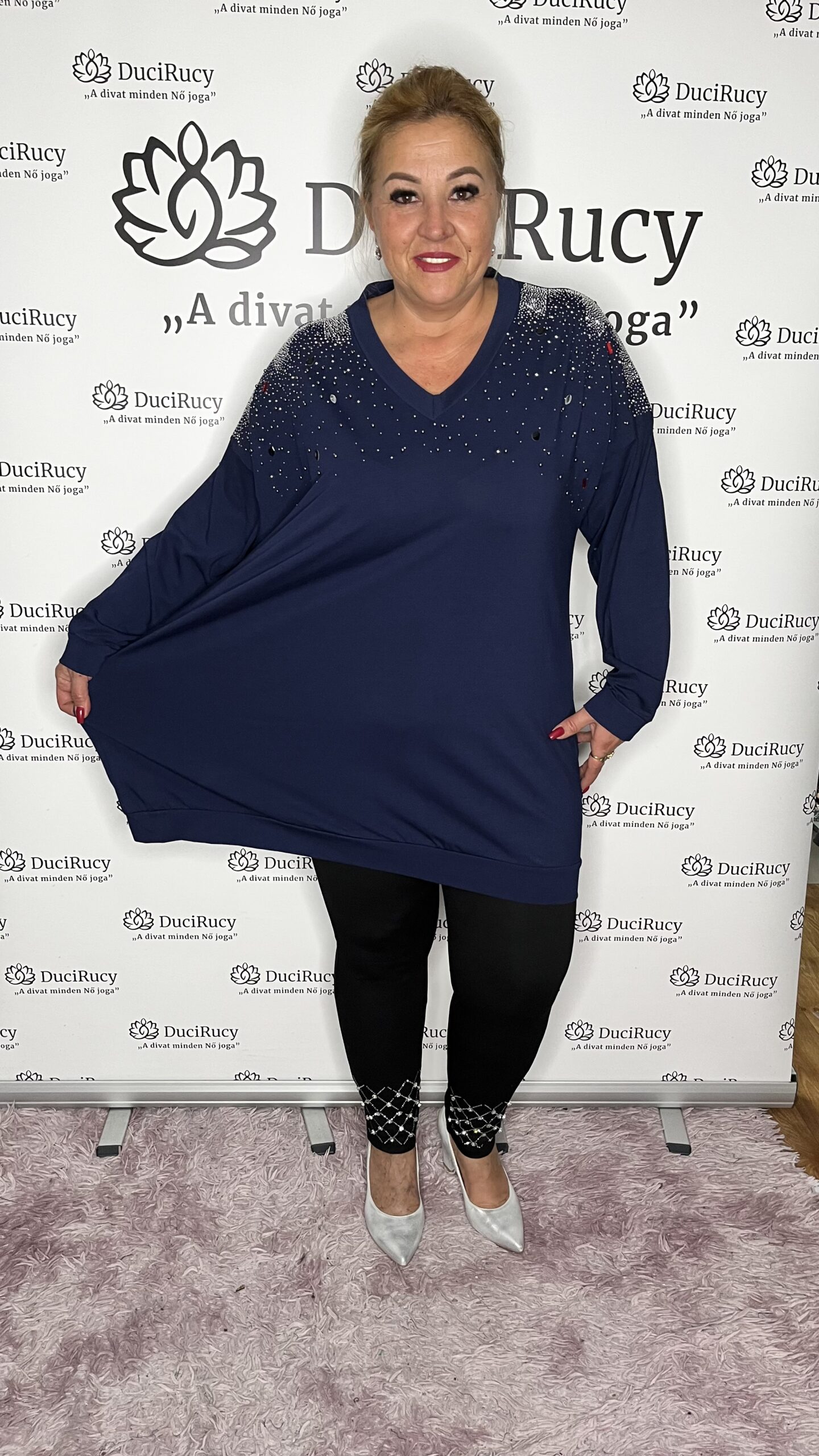 Török prémium minőségű pamut anyagból készült, V nyakú, kisebb-nagyobb kövekkel díszített tunika. A tunika alján passzé rész található. Anyaga rugalmas. Igazán mutatós kis darab.