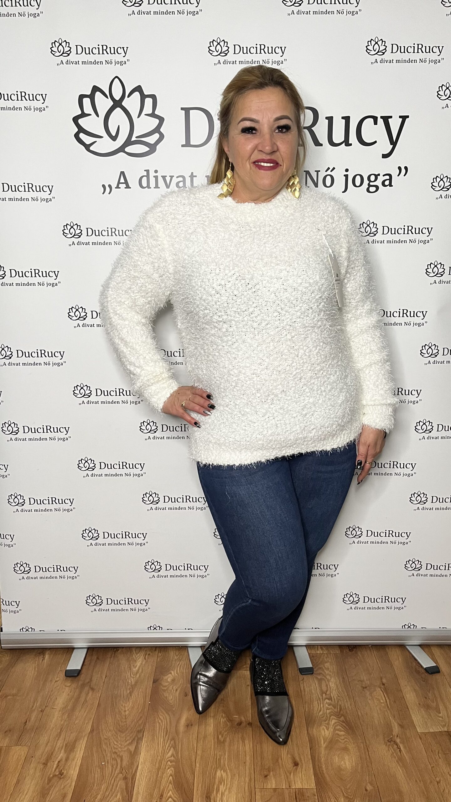 Török szörmés pihe-puha kötött félgarbós pulóver fehér színben