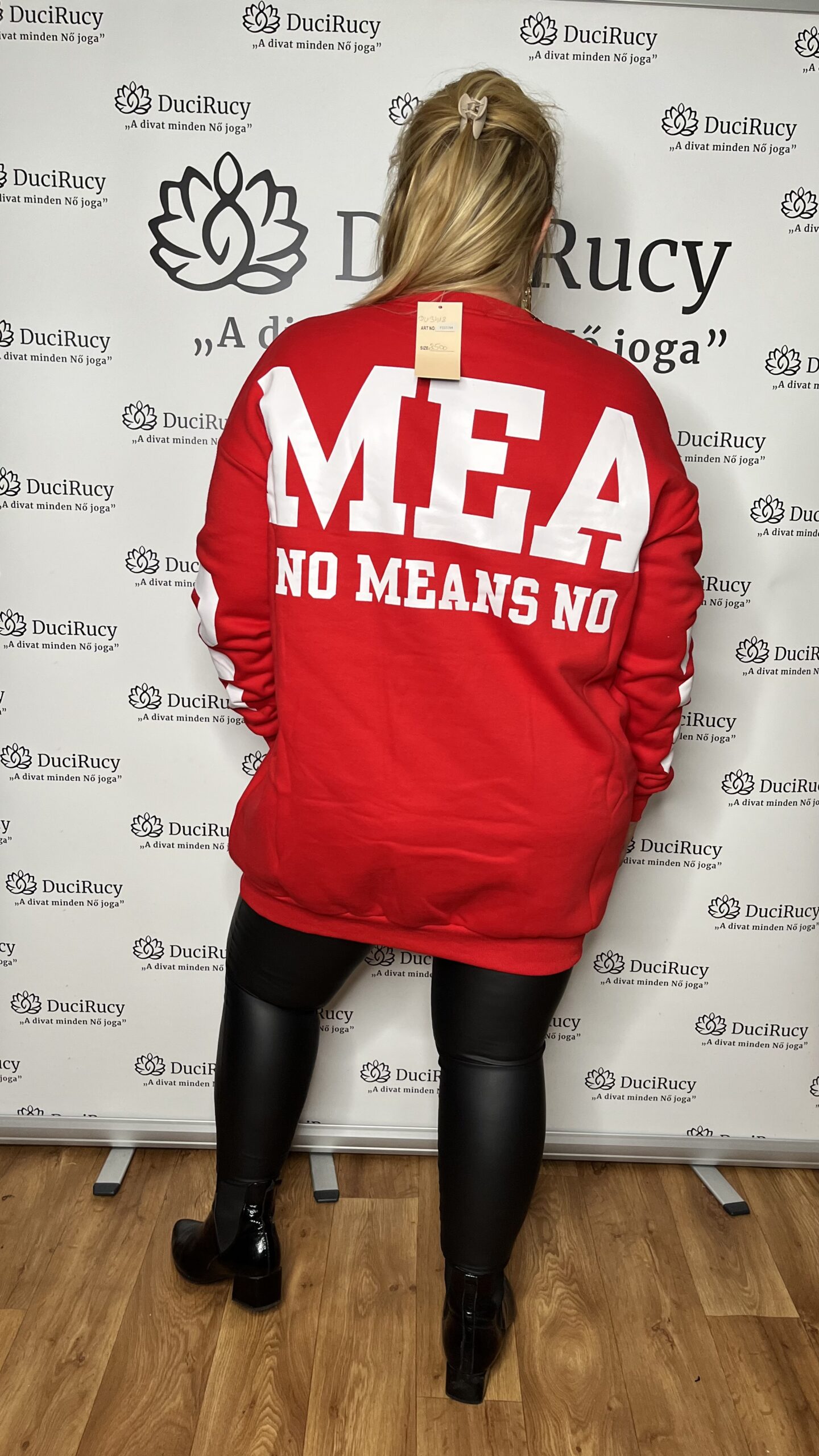 Belül bolyhos, ujján és hátán feliratos szuper pulóver.