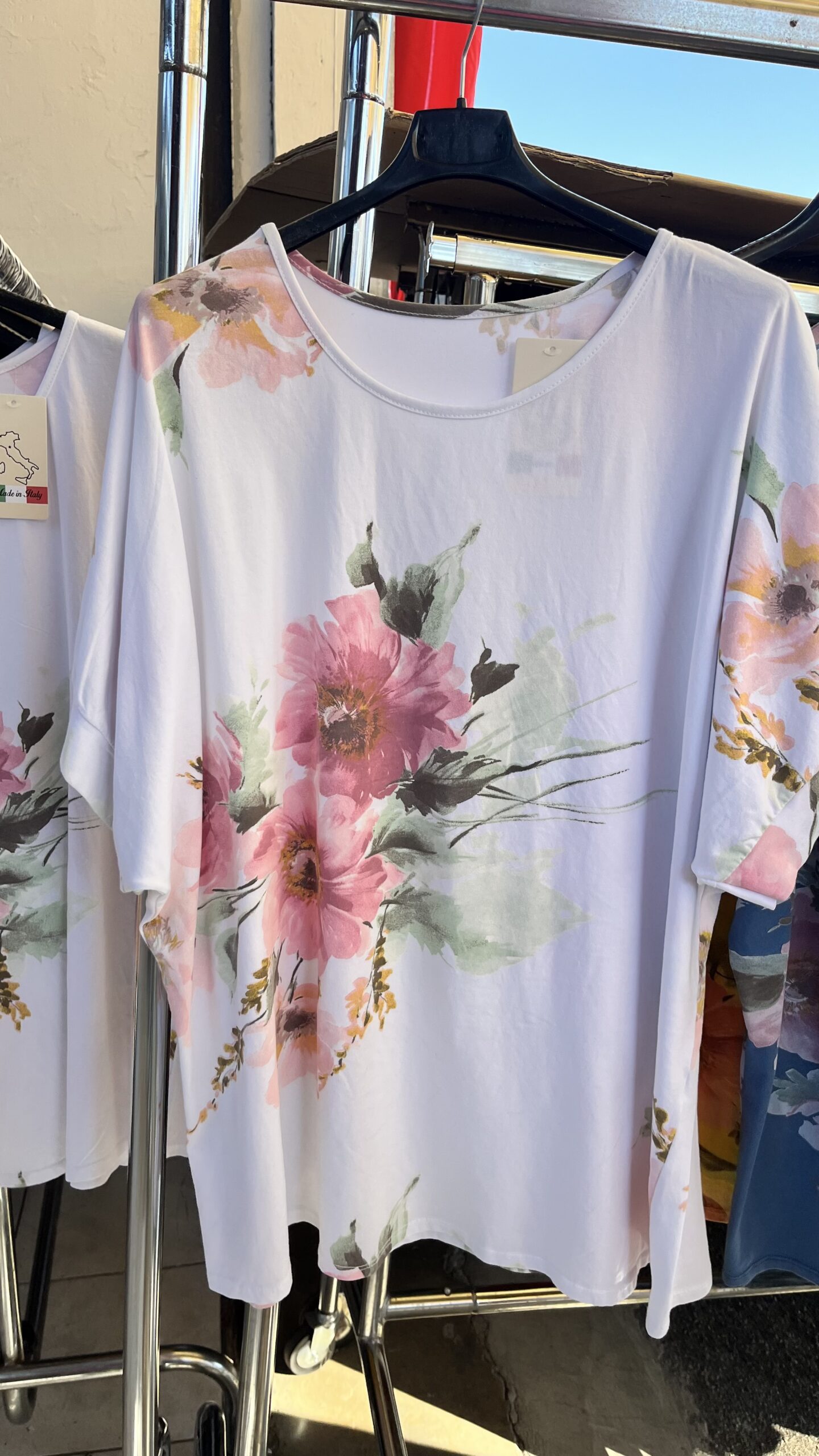 Virág mintás, kerek nyakú, pamut póló fehér színben mennyiség
