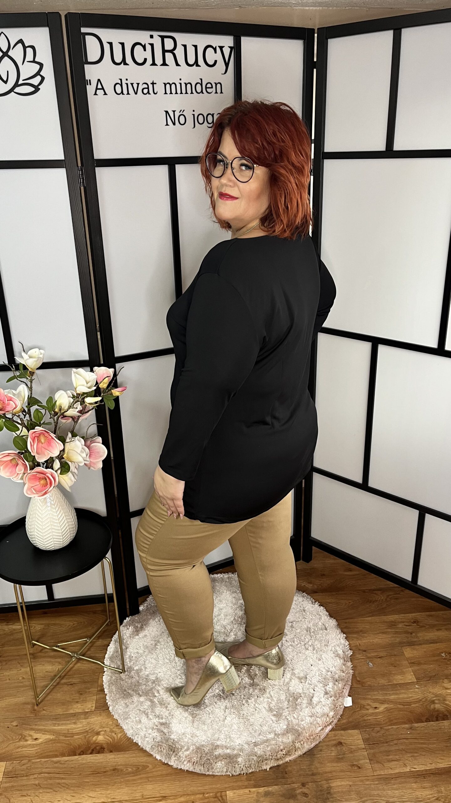 A modell a képen a 4/5XL méretet viseli. A modell mellbősége 120 cm, csípőbősége 134 cm, magassága 166 cm.