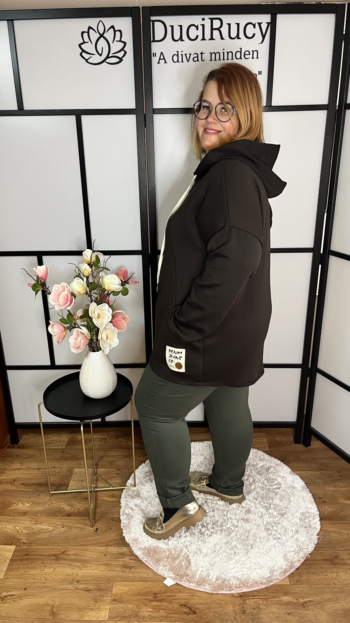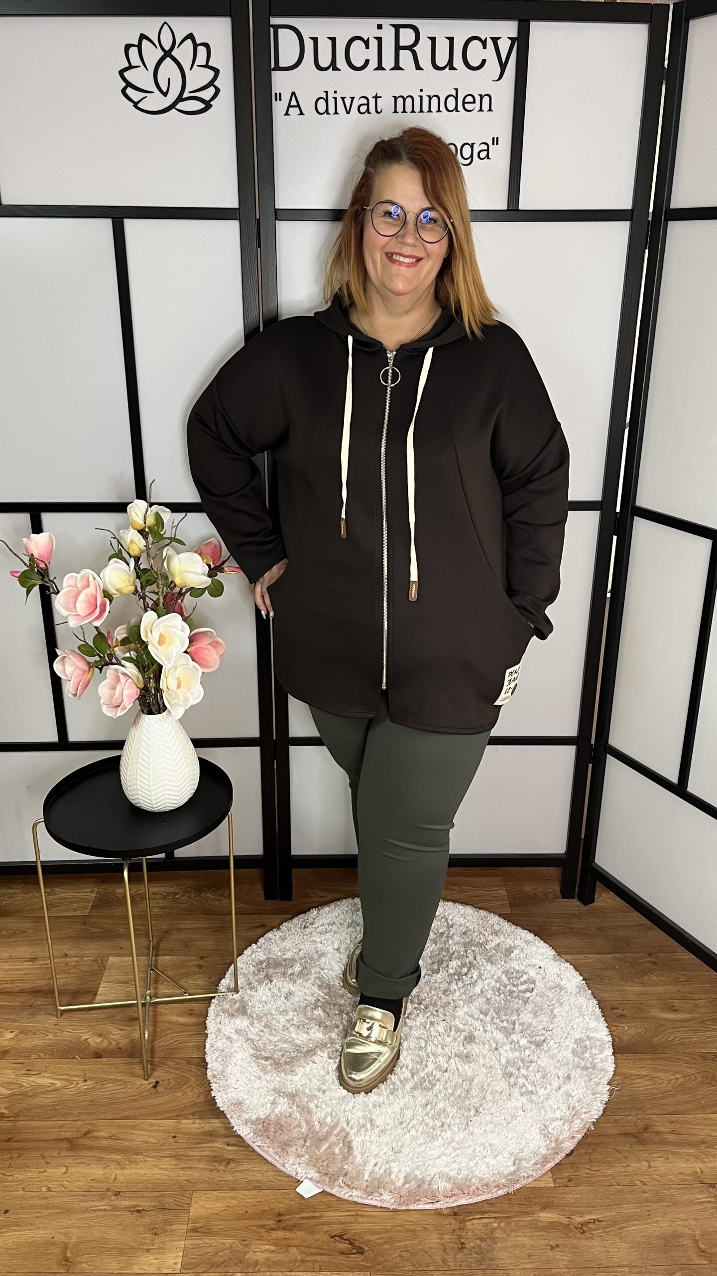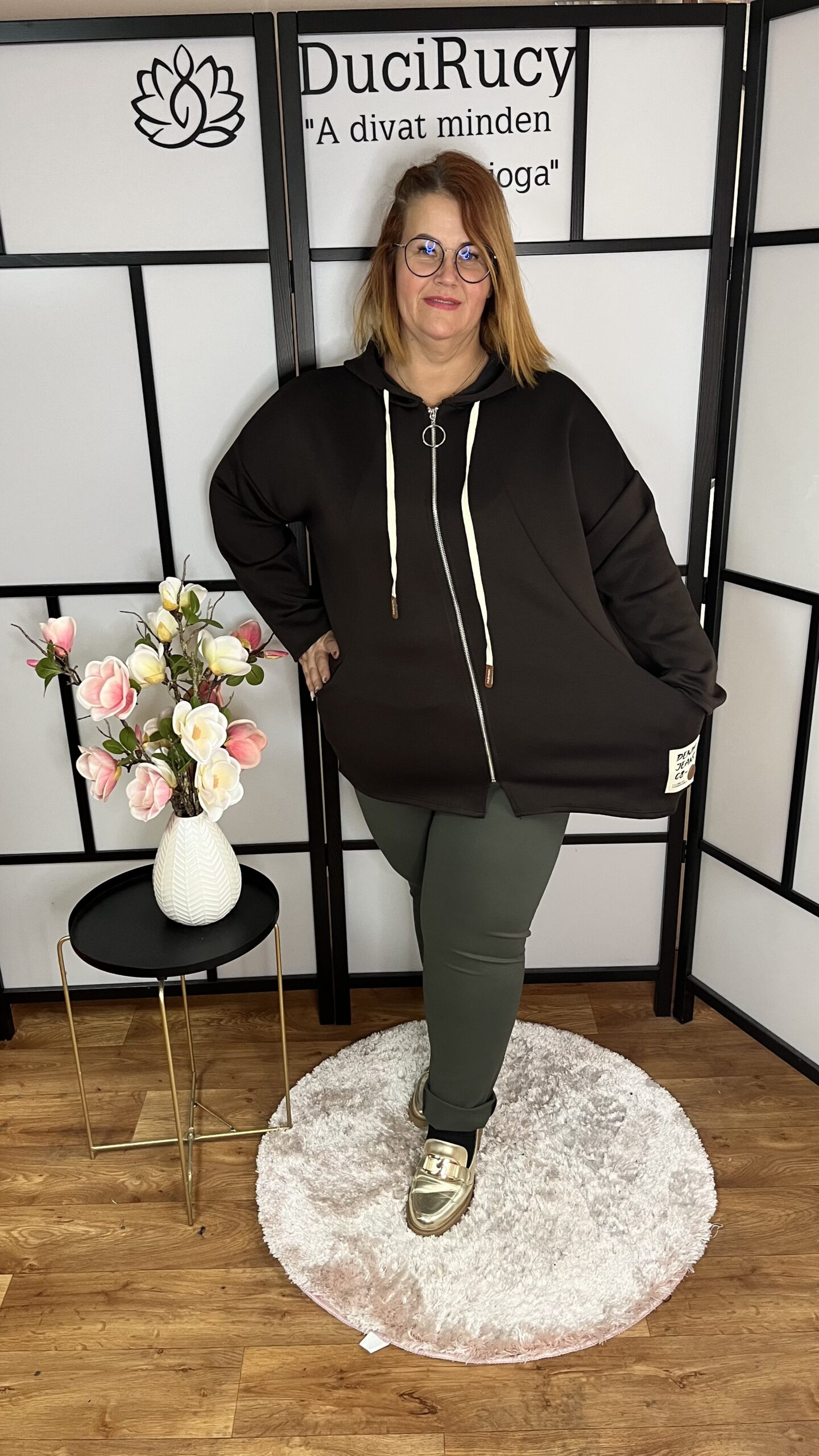 Szuper trendi, divatos zipzáros, kapucnis és zsebes kardigán, igazán fantasztikus minőségi anyagból. A kardigán elöl pár centivel rövidebb fazon, mint hátul. A kardigán anyaga rugalmas.