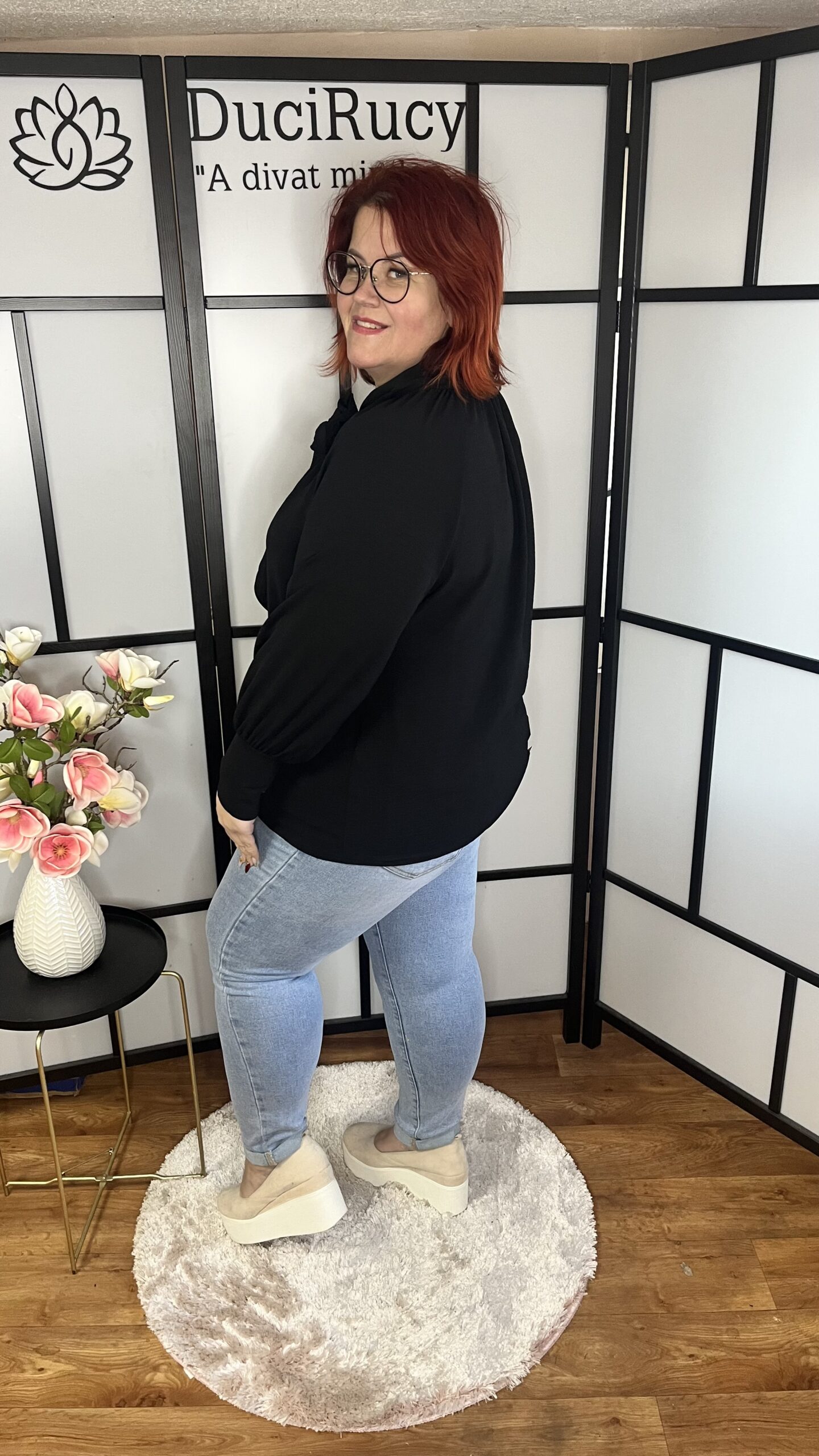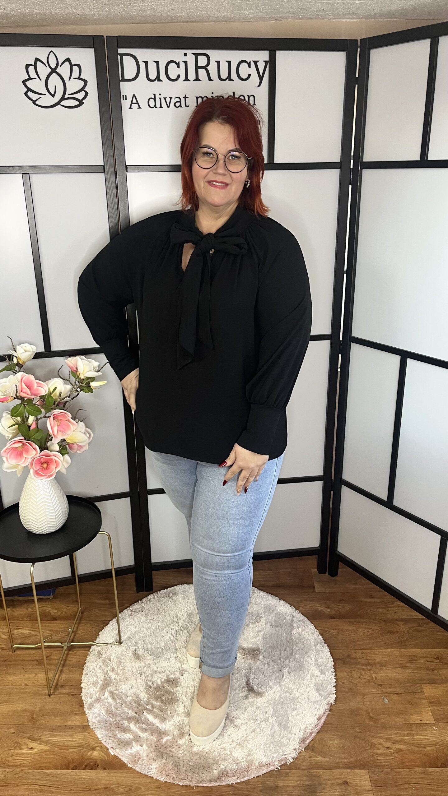 Zsorzsett anyagból készült, megköthető nyakú, egyenes fazonú egyszínű blúz. Az ujja gombos. A felső anyaga nem rugalmas. Bármilyen alkalomra felvehető ez a csodás felső. Jól kombinálható darab, akár szoknyához, akár nadrághoz is kiváló.